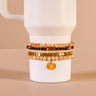 Add charm and personality to your tumbler with our tumbler bracelet stack. This set includes 5 unique bracelets that fit all standard 40 oz tumblers. Pair with a tumbler boot to keep your bracelets secure and prevent slipping. Perfect for personalizing your tumbler and making it uniquely yours, while also offering quick identification and a fun accessory.