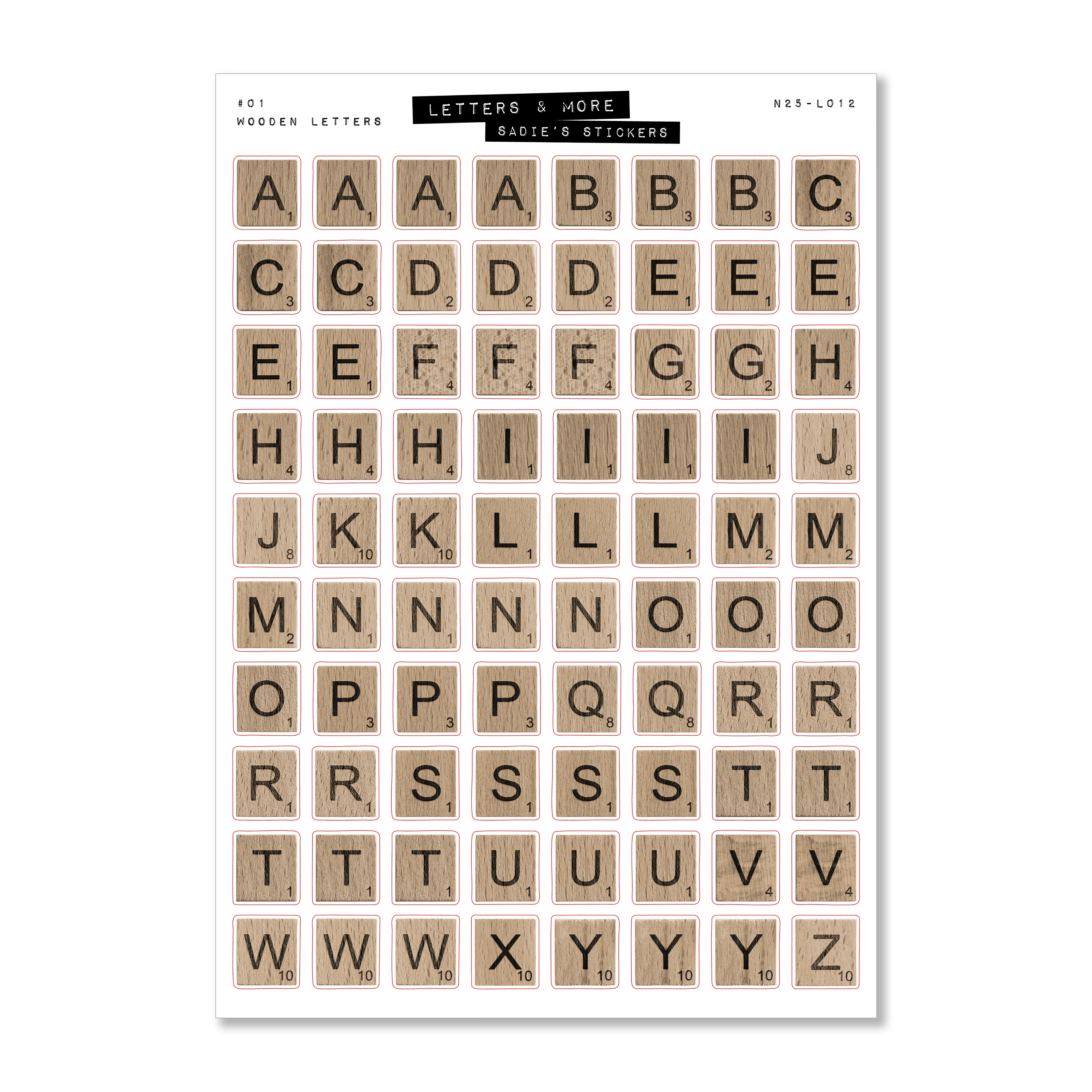 Wooden Letters Junk Journal Sticker Sheet