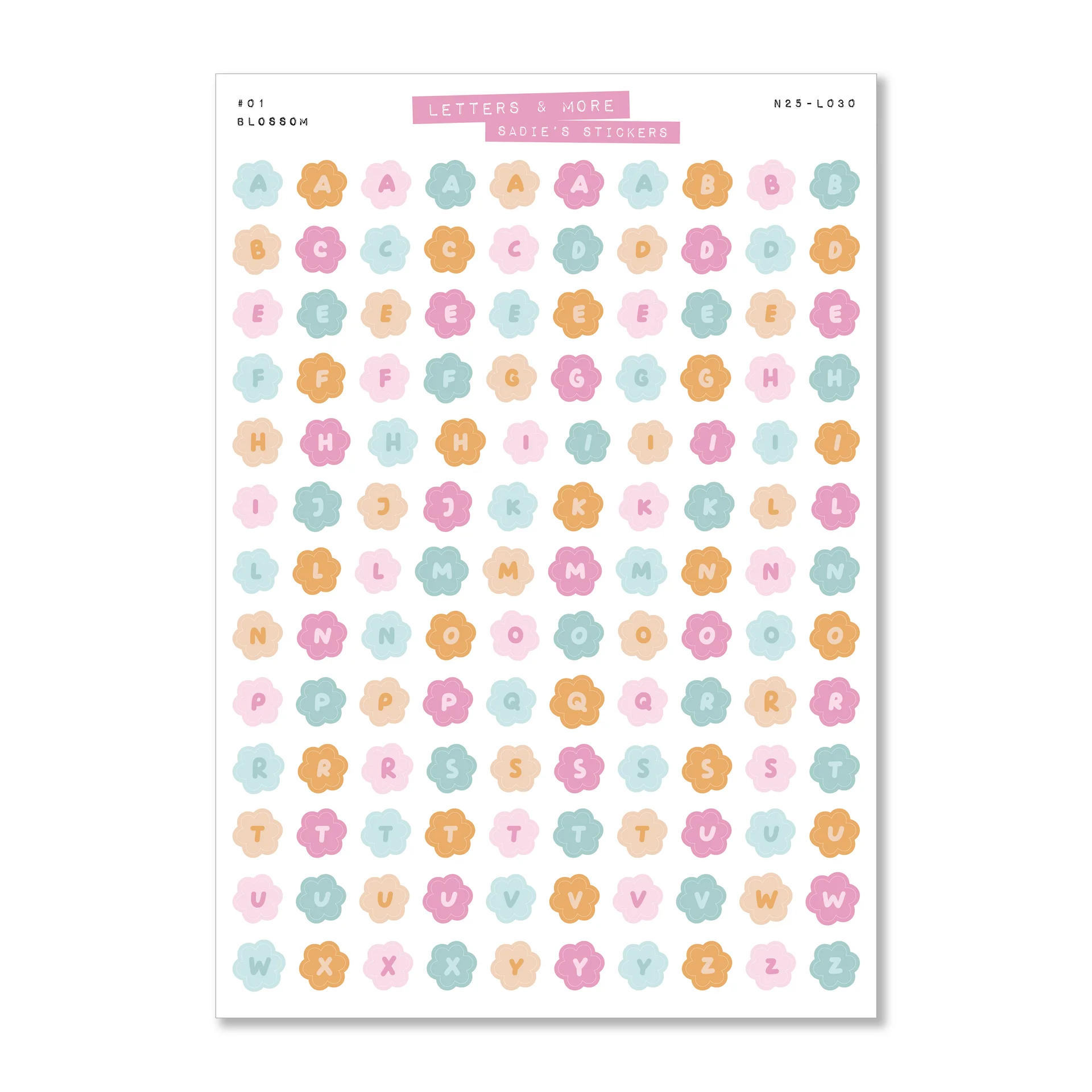 Blossom Letters Junk Journal Sticker Sheet