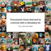 The kit includes everything you need to start your crochet for beginners journey, including a pre-started Felix the Fox piece, Woobles Easy Peasy yarn that won’t fray, a 4mm crochet hook, stuffing, plastic safety eyes, a tapestry needle, stitch markers, and access to easy video tutorials that guide you through the entire project.